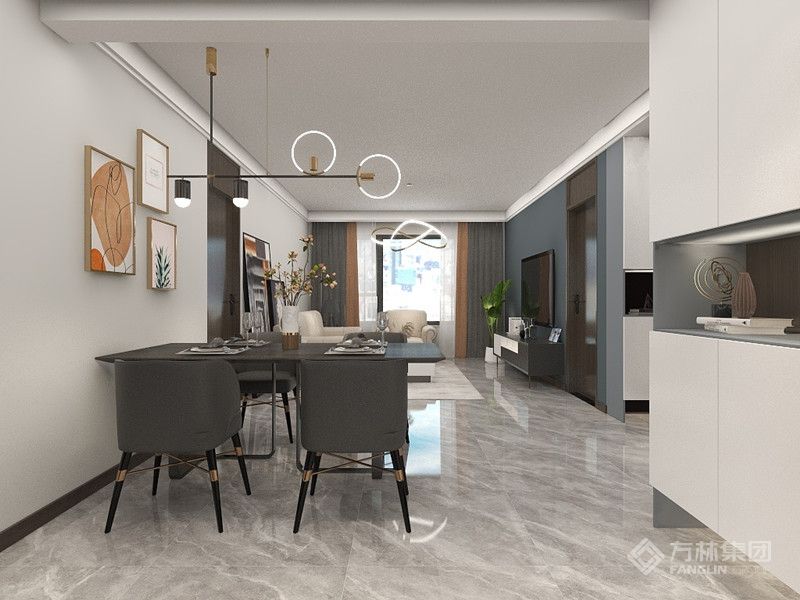 整体处理比较简洁,没有过多的造型,为了保证层高客餐厅只做了简单的边线,局部点缀让居家的灯光更加柔和。