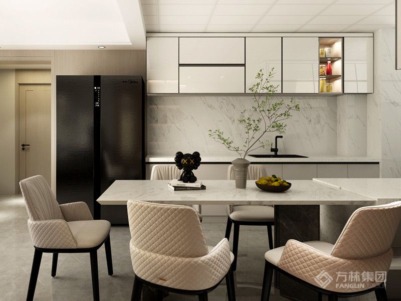 留白,从某种角度上讲,留白即留空,但从设计的角度,留白却并非仅仅只是留空。在本案的设计中,设计师从深层次的角度理解留白,把握留白的度,利用色彩、材质的质感等打造一个具备现代感,充满自然气息的,大气、温暖的家
