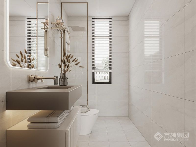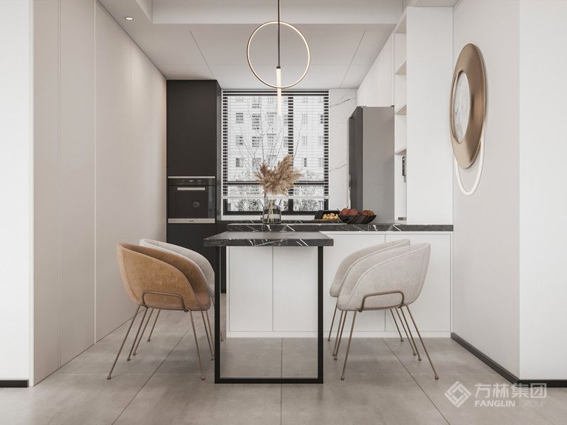 无主灯设计的吊顶干净利落,朝南超大采光面的加持下,仅用内嵌灯带和射灯作为补充照明便已足够。客餐厅做开放大面积木饰面上墙,让空间更显内敛大气。电视直接嵌入,不占空间也十分美观。