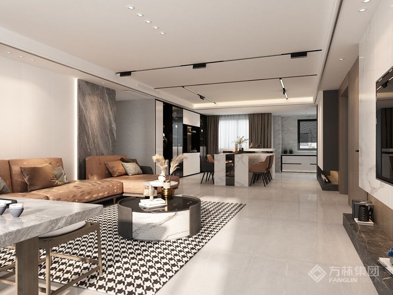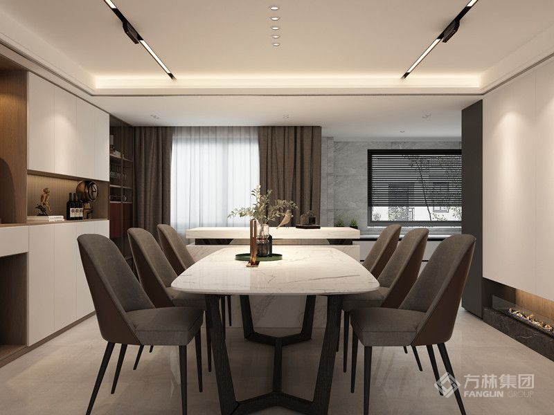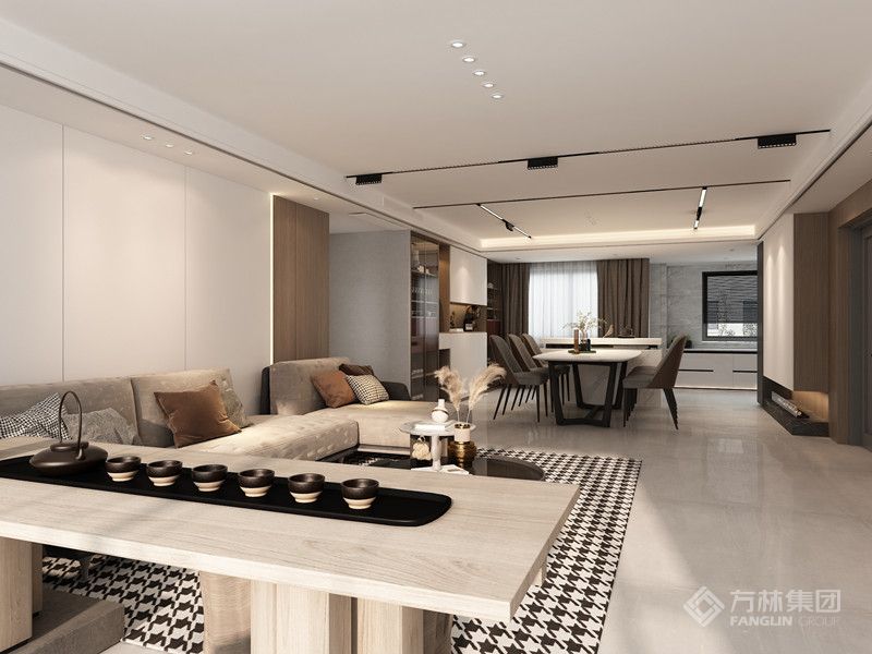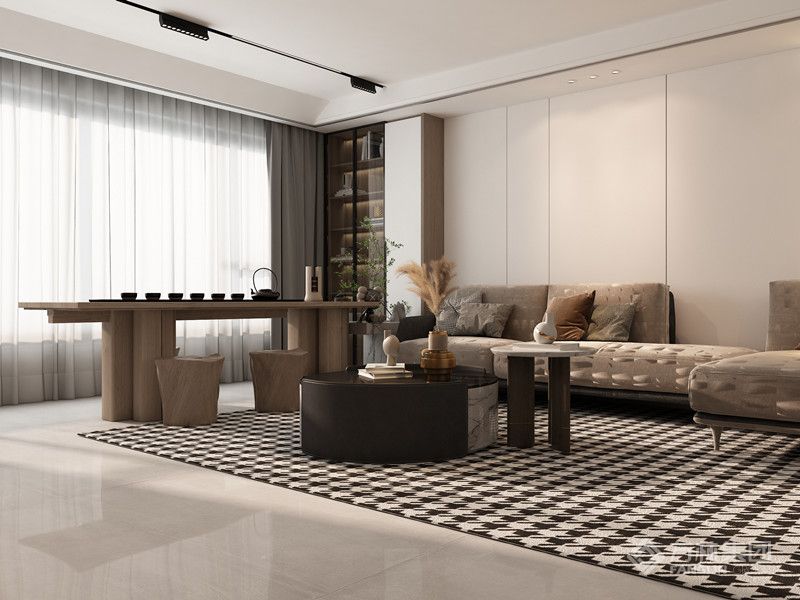 在设计开放空间时,采用了精致的家具和干净的线条。开放的空间给所有的设计带来最大的舒适,不仅满足日常生活的需要,更体现了艺术的美学。客厅的所有空间都不矫揉造作,高度理性地减少了装饰和色彩的元素,展现出手写体的美和现代极简主义的美。 设计师用简约却不简单的细节,打造了一个呈现灵性的住宅空间。室内有条不紊的纹理细节得到完美的呈现,结合内饰的点缀,整体有了趋向完美的比例感,材质赋予了整个空间高级质"